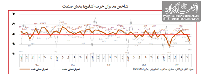بخش زیادی از صنایع در تمامی زیرشاخص‌های اصلی، از جمله تولید، سفارشات جدید، موجودی مواد اولیه و اشتغال، ارقام پایین‌تر از ۵۰ دارند که نشان‌دهنده مشکلات نقدینگی، محدودیت منابع و فشار هزینه‌ای بر تولیدکنندگان است. افزایش چشم‌گیر قیمت خرید مواد اولیه در کنار کاهش تقاضای داخلی و تداوم محدودیت‌های صادراتی به گونه‌ای بوده است که حتی بهبود شرایط آب و هوایی و کاهش فشار مصرف انرژی نتوانسته تاثیر محسوسی بر ارتقای شاخص‌ها داشته باشد. یکی از پیامدهای ملموس این وضعیت، تشدید رکود تورمی در بخش صنعت است. کاهش شدید تقاضا در بازار داخلی، اختلال در صادرات ناشی از مشکلات ارزی و قطعی اینترنت و فشار هزینه‌ای ناشی از جهش نرخ ارز، تولیدکنندگان را تحت فشار گذاشته است. به‌طور همزمان، کاهش اعتماد فعالان اقتصادی به آینده، با شاخص انتظارات تولید در ماه آینده که پایین‌ترین سطح تاریخ شاخص را ثبت کرده، حاکی از نگرانی گسترده بنگاه‌ها نسبت به ادامه فعالیت است.